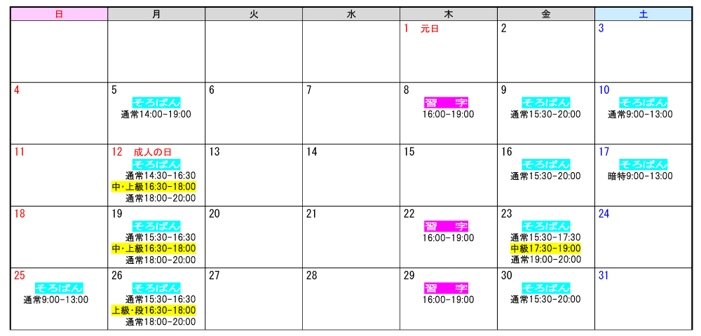 「そろばん教室」1月17日掲載 「習字教室」1月17日掲載