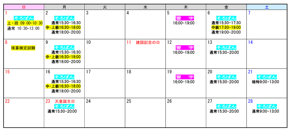 「そろばん教室」12月24日掲載 「習字教室」12月24日掲載