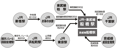 東武野田線「船橋駅」下車、北口より徒歩約3分